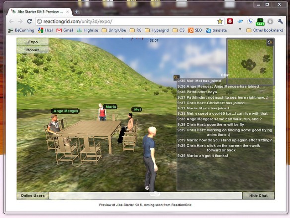 So today, our discussion focused on web-based virtual worlds.  And instead of traveling the Hypergrid, we made a special visit to a Jibe-based Unity3D world.