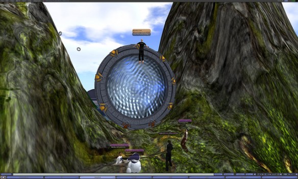 The Stargate will then go through some animations and finally a portal will appear.  Walk through the portal and you will make a hypergrid jump to the region “Wizzy” on ReactionGrid.