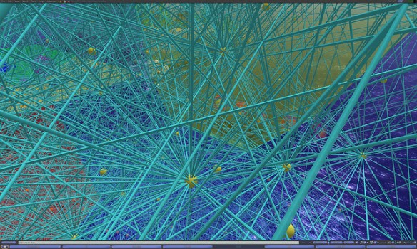 Currently on display in the Wizzy sim is the “Concentric Circles” Rotation of the E8 Polytope.  The E8 is the most complex and elegantly beautiful geometric object known to mathematicians.  Learn more about the E8 Polytope here: