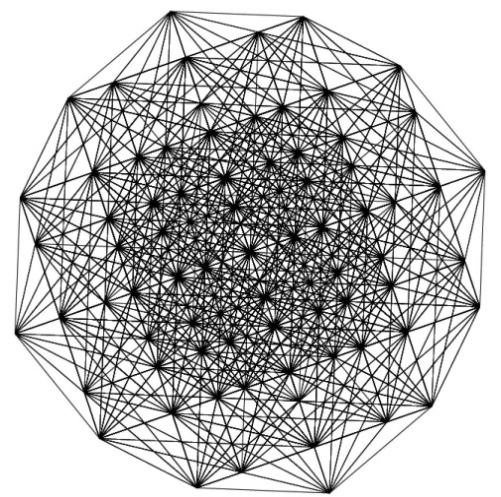 This object consists of all 240 vertices, with 6,672 edge struts connecting all of the vertices.