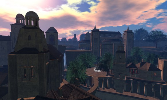 A few years ago in Second Life, Nick created a build called “Osgiliath” that spanned 4 regions. He had to close that project due to financial reasons, but the generous folks at PMgrid offered to let him rebuild it for free on their grid. And they gave him 16 regions as his new canvas for what he now calls “Romenna.”