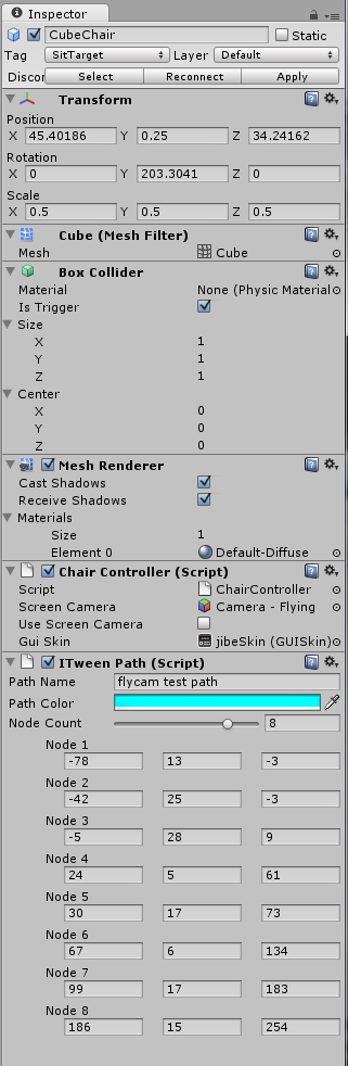 Once you’ve got all that set up, your CubeChair should look like this in the Inspector.