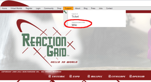 You can find the ReactionGrid Community Virtual World Wiki at http://education.reactiongrid.com.  You can also see a link to it on our homepage under the Support section.