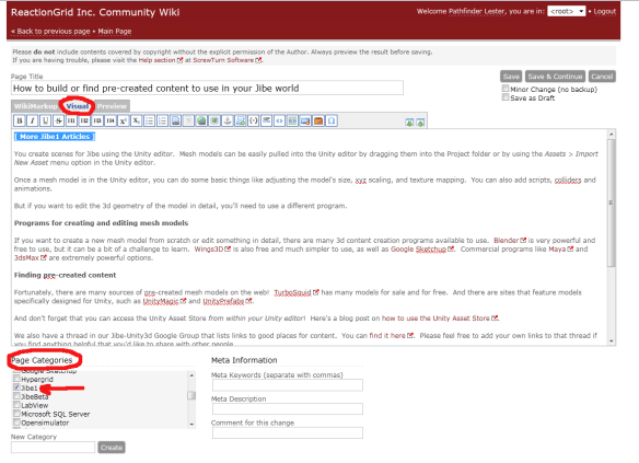 3 thoughts on “How to add/edit/find articles about Jibe and Unity3d on the ReactionGrid wiki
