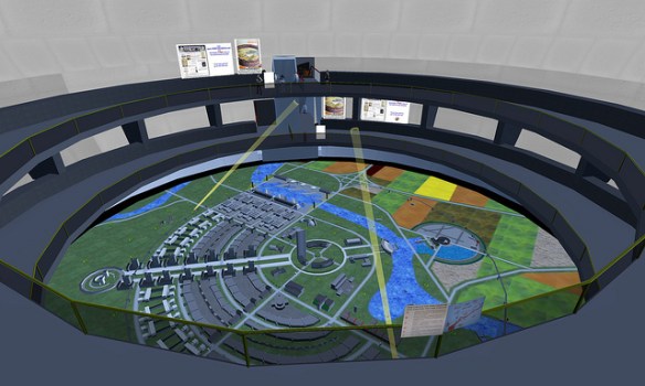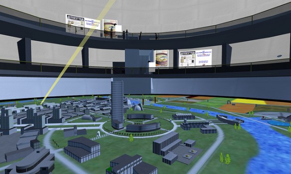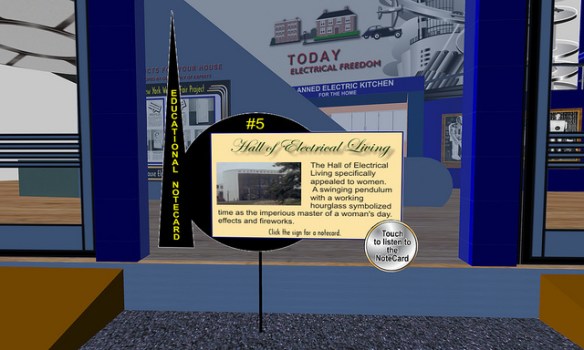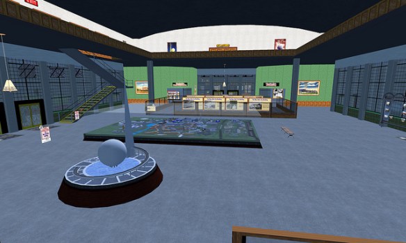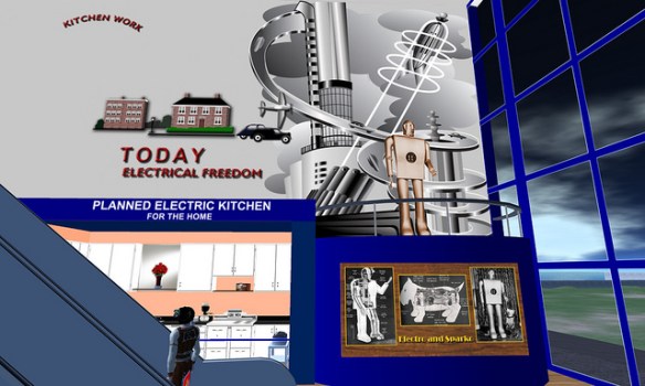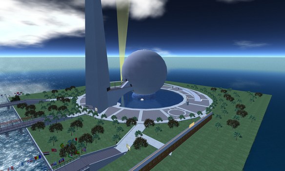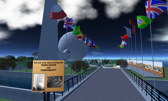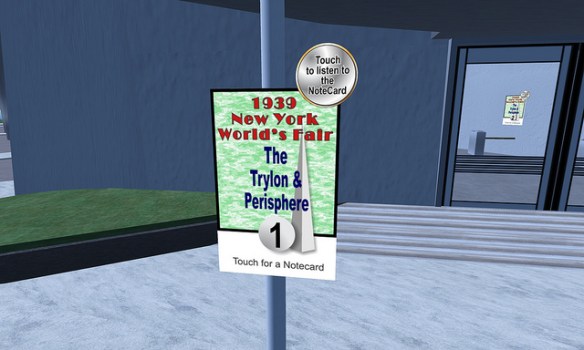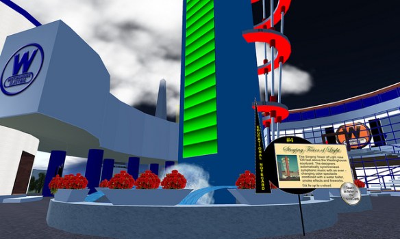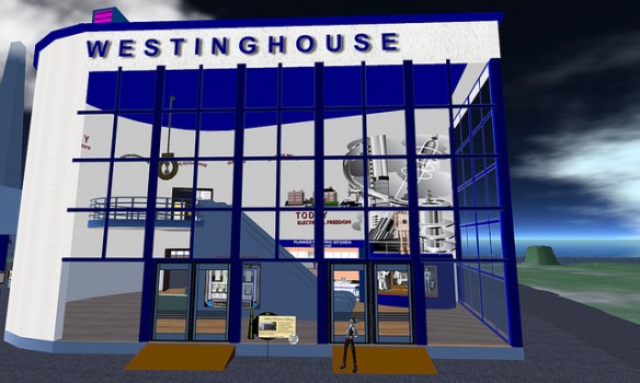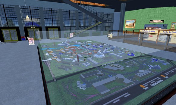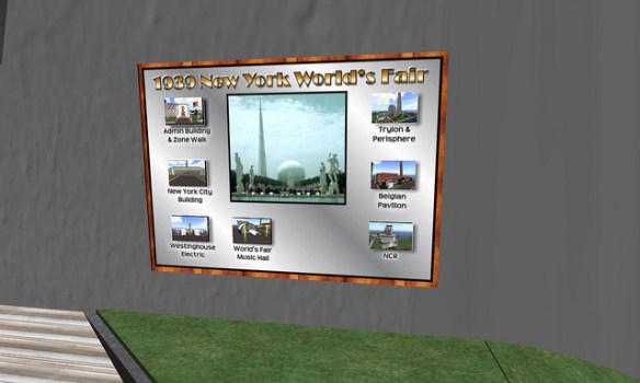 Paul M. Van Dort has organized a celebration of the Opening of the World’s Fair in ReactionGrid. This is the first time an event commemorating the Fair’s opening in a virtual world has ever been done. While only a few of the pavilions have been constructed so far, this is an opportunity to see the Fair and to actually walk around and explore it. Walk through the Trylon and Perisphere, view Democracity, and travel down the Helicline. Visit the New York City Building, the Belgium Pavilion, and Westinghouse Electric.