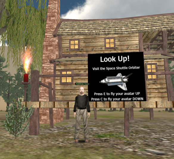 Finally, I added a sign on the ground where avatars first appear in my Jibe world to let them know where they can find the Space Shuttle Orbiter.