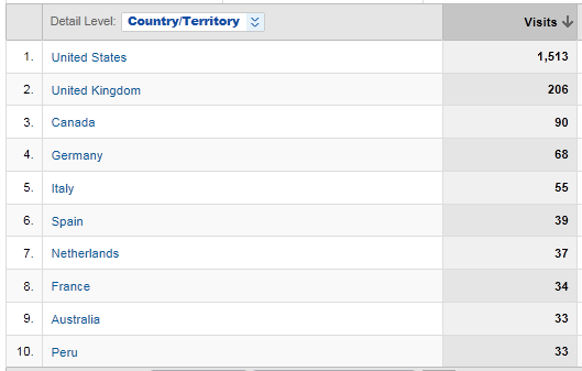 One of the awesome things about having a multiuser virtual world like Jibe running in your web browser is that you can use all kinds of useful web-based tools.  I have some Google Analytics code embedded in the page where my Jibe world lives, and this lets me easily see all kinds of interesting statistics on who has been visiting.