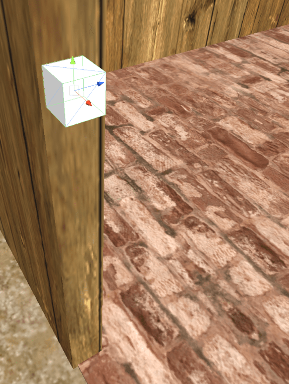 First, add a GameObject cube to your Scene.  Shrink it down and position it so that it’s sitting right up against the left surface of your doorway.  Name it Door Hinge in your Hierarchy.