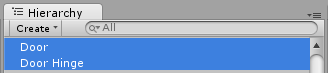 Now, you’ll see both your Door and Door Hinge objects in your Hierarchy.