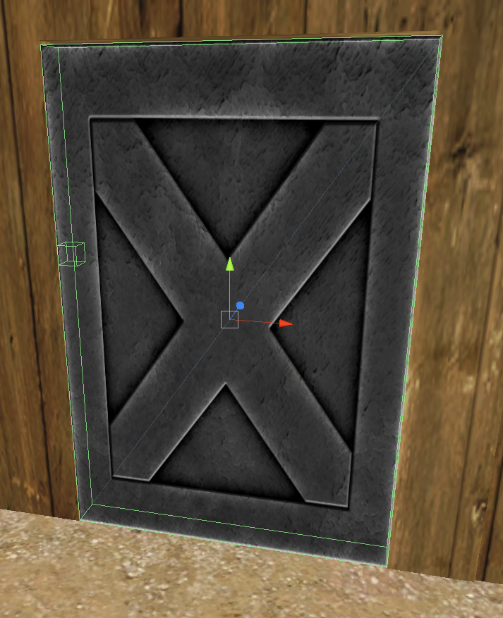 Now create another GameObject cube, name it Door, and position it so that it fills your doorway completely.  Add a texture to it so it looks nice.
