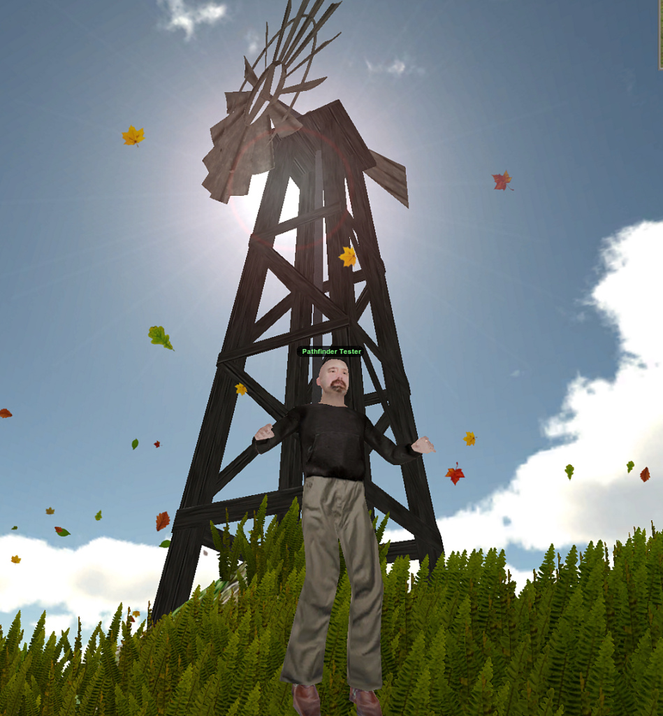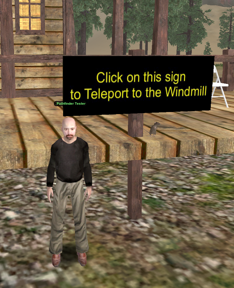 You can try this out in my own Jibe world. I’ve set up a sign in my arrival area that lets folks take a trip to my windmill far across the landscape.
