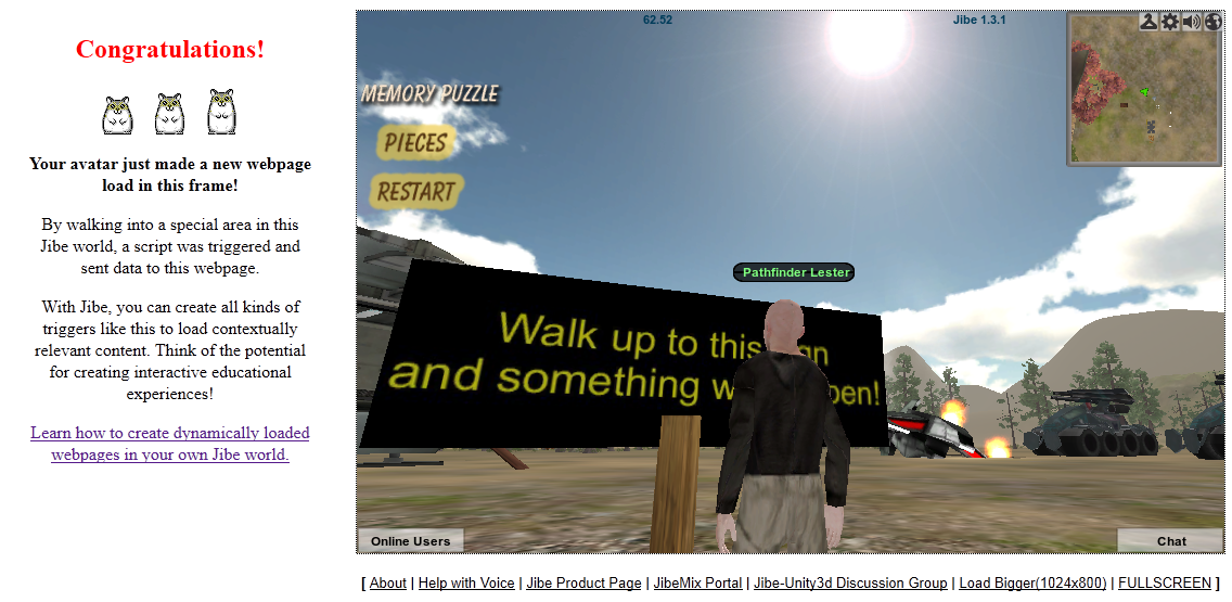 One of the most useful features of a multiuser virtual world platform like Jibe is the fact that it can be accessed from a web browser.  Just click on a URL and you are instantly in a Jibe world.