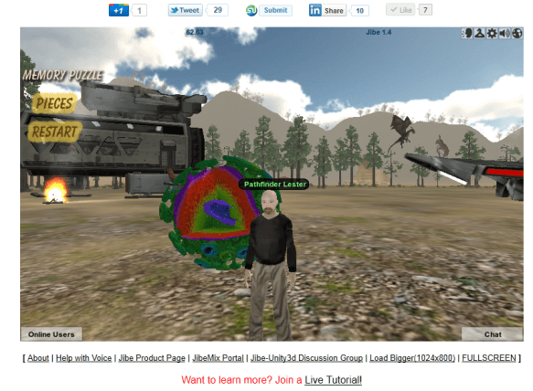 Jibe is a multiuser virtual world you create and share with people on the web. All you need to do is give people a URL and bingo, they are visting your world.