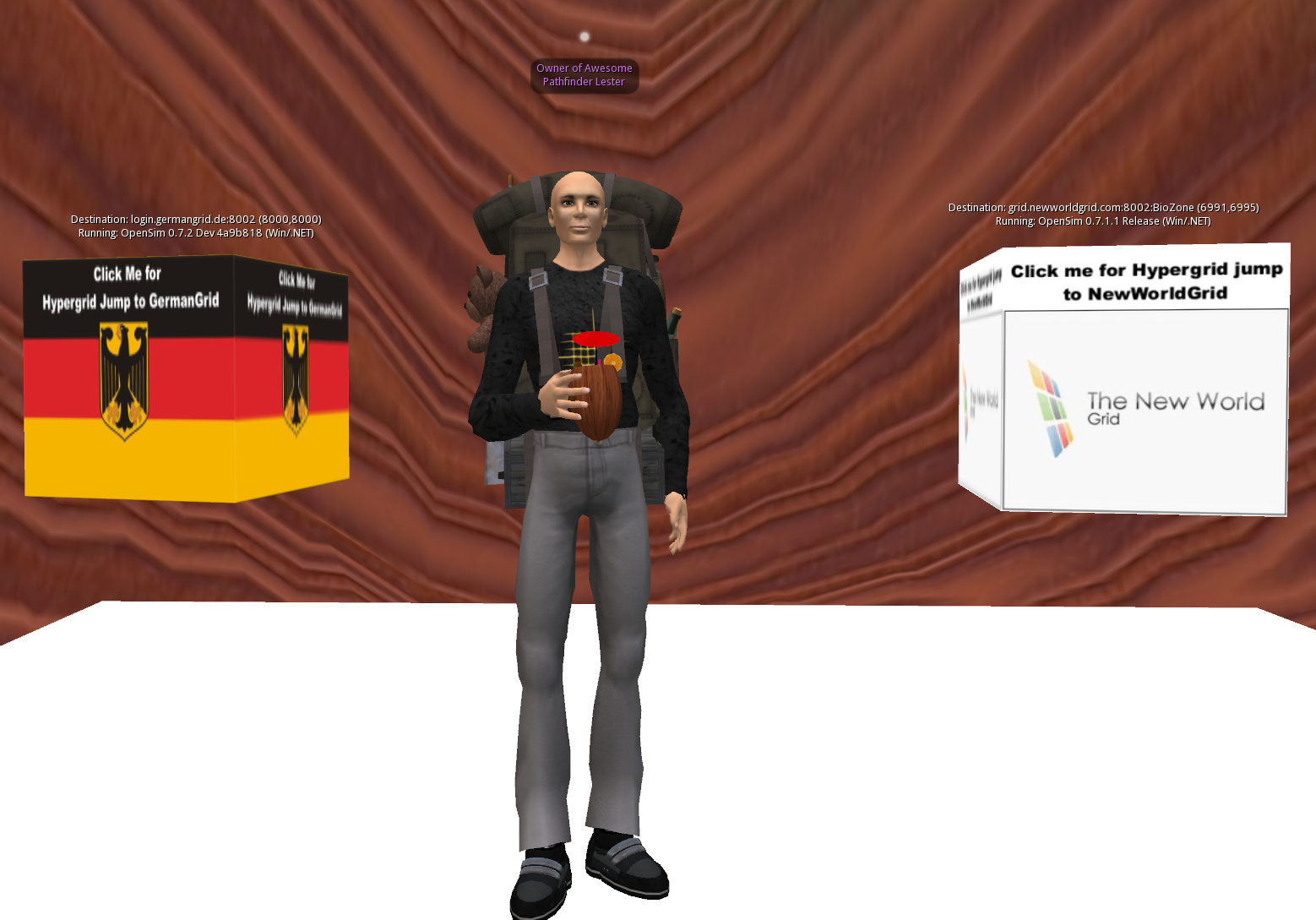 Those of us who couldn’t make it to GermanGrid simply hopped from NewWorldGrid to FleepGrid, since both grids are within the 4096 region limit for Hypergrid jumps.