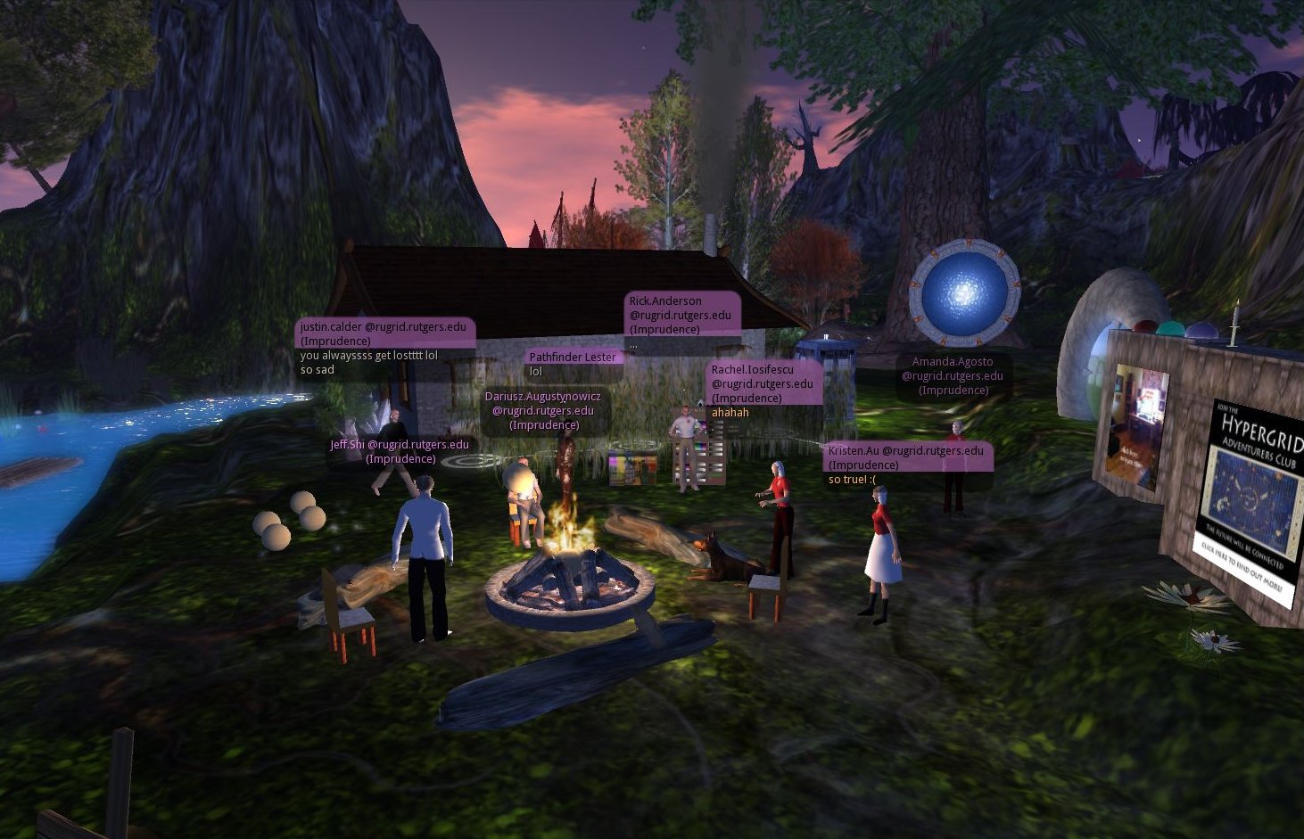 UPDATE Jan 27 2012: Rick Anderson, Director of Virtual Worlds at Rutger’s Center for Online & Hybrid Learning and Instructional Technology, brought a group of 10 students to visit Pathlandia last night. I’m happy to report that my grid handled the load perfectly!