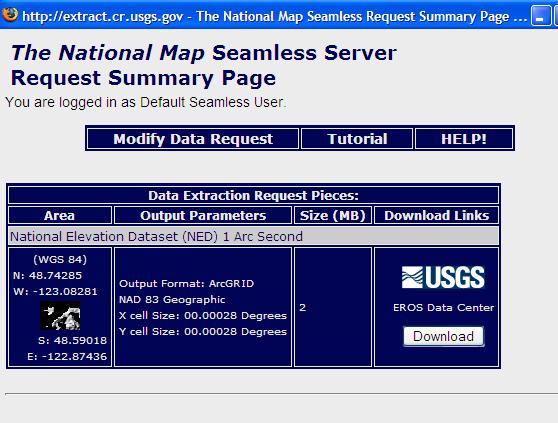 You want to get a .BIL formatted file, so click at the top of the request summary page on “Modify Data Request”.  It looks like a column header but it is a link.