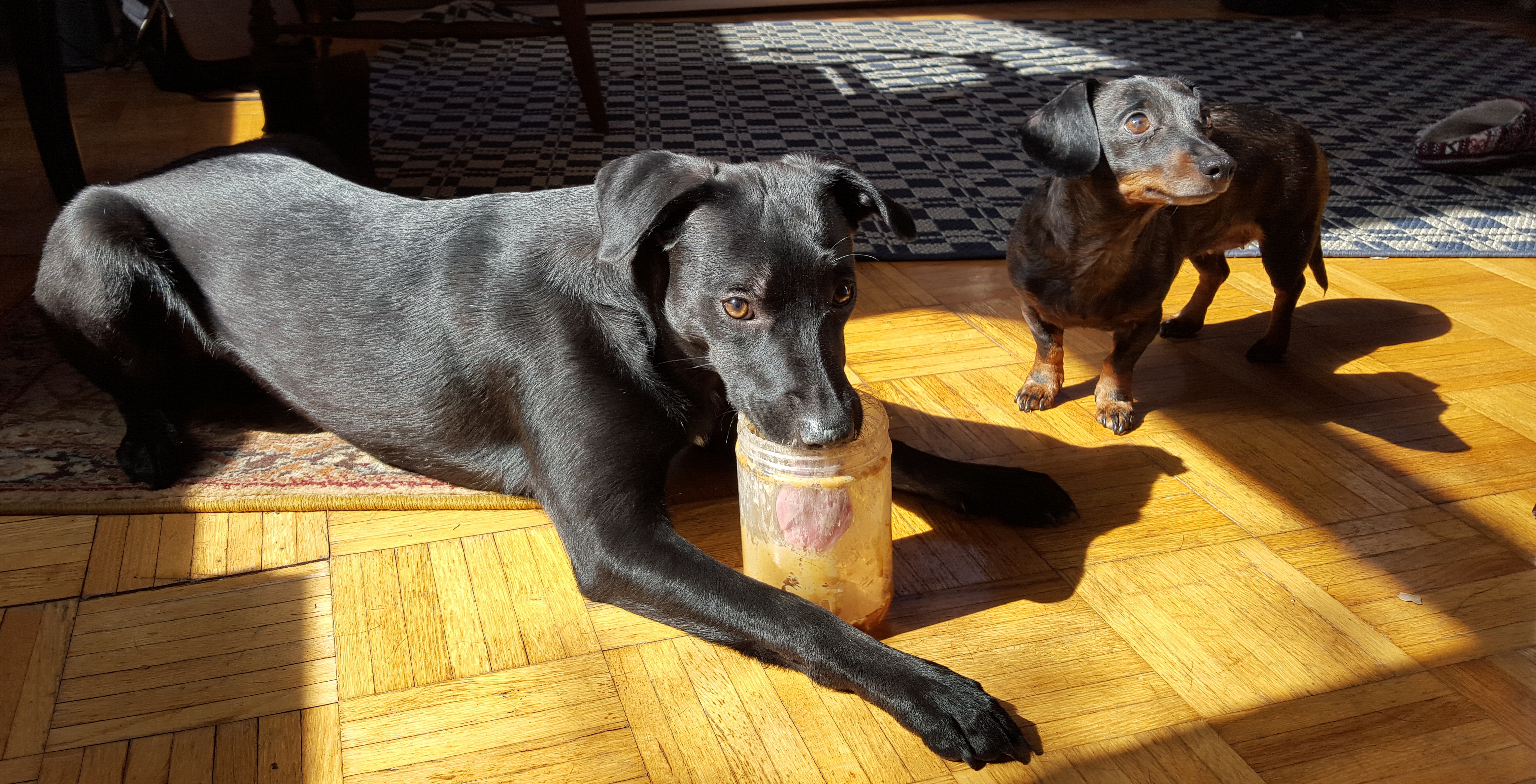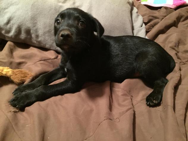 He’s a bit more grown up now. Except for his tail. We think he’s a labrador/terrier mix.