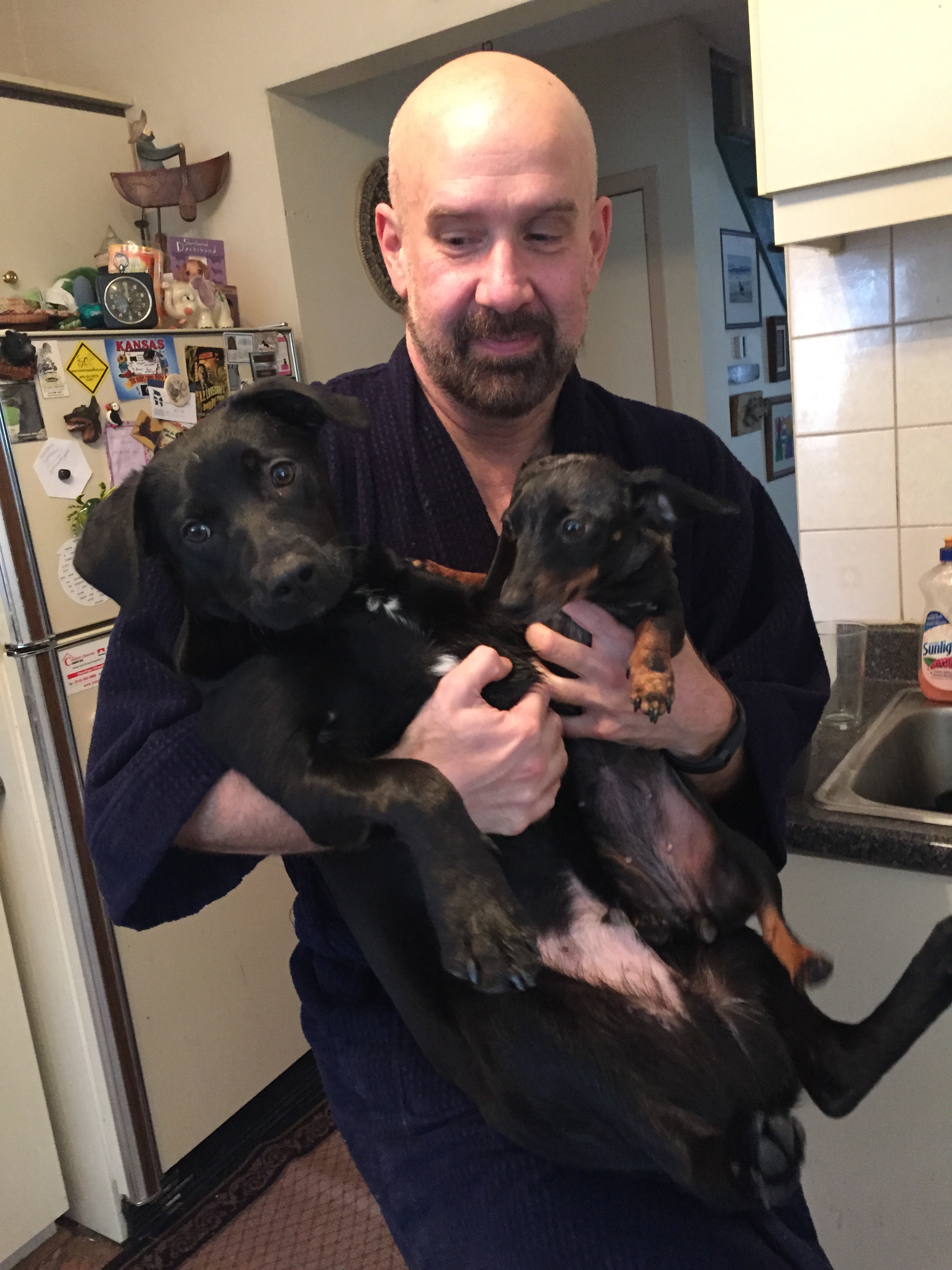 He’s about 10 months old now and is completely in love with Samantha, our wiener dog.